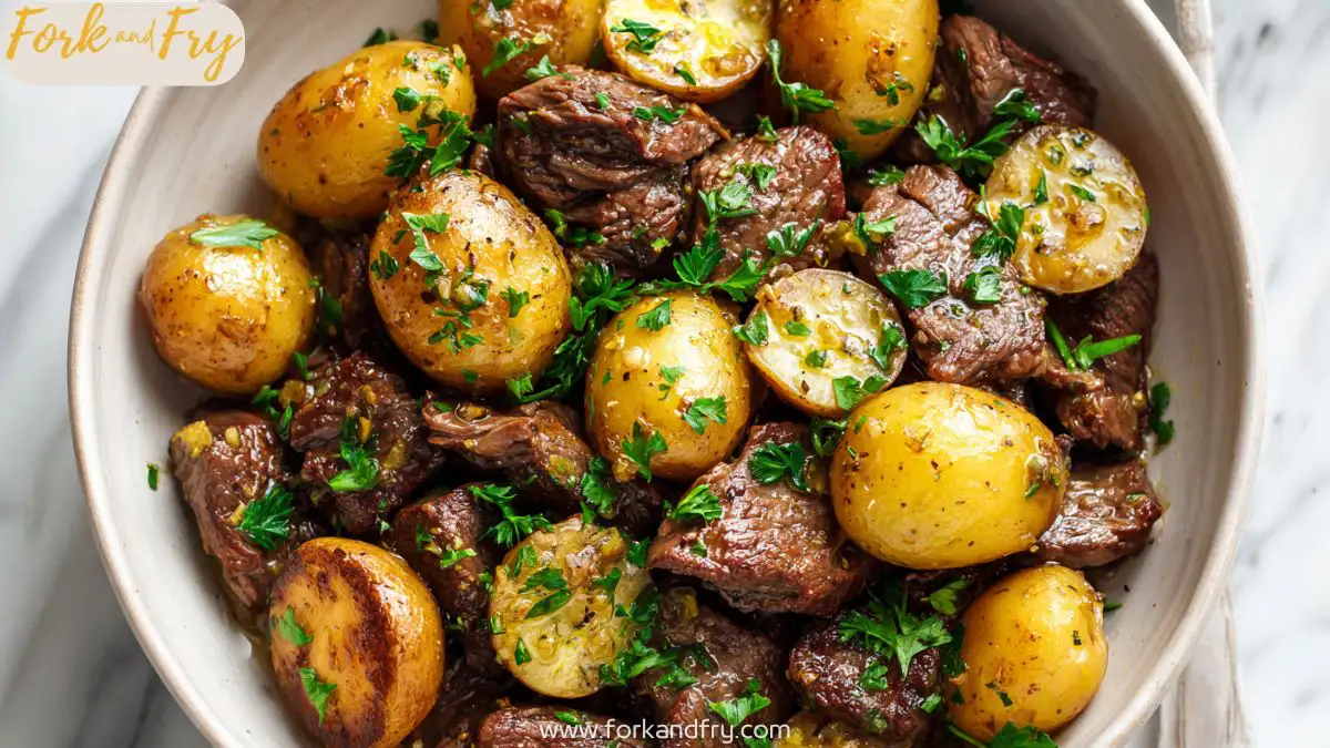 Slow Cooker Garlic Butter Beef Tips & Potatoes