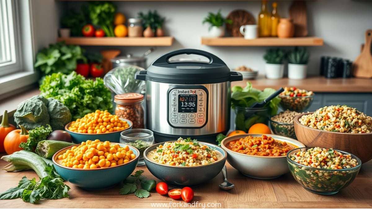The Instant Pot is great for cooking without meat. It’s perfect for making tasty, dairy-free dishes. Its special features and settings make it easy to cook delicious, plant-based meals.