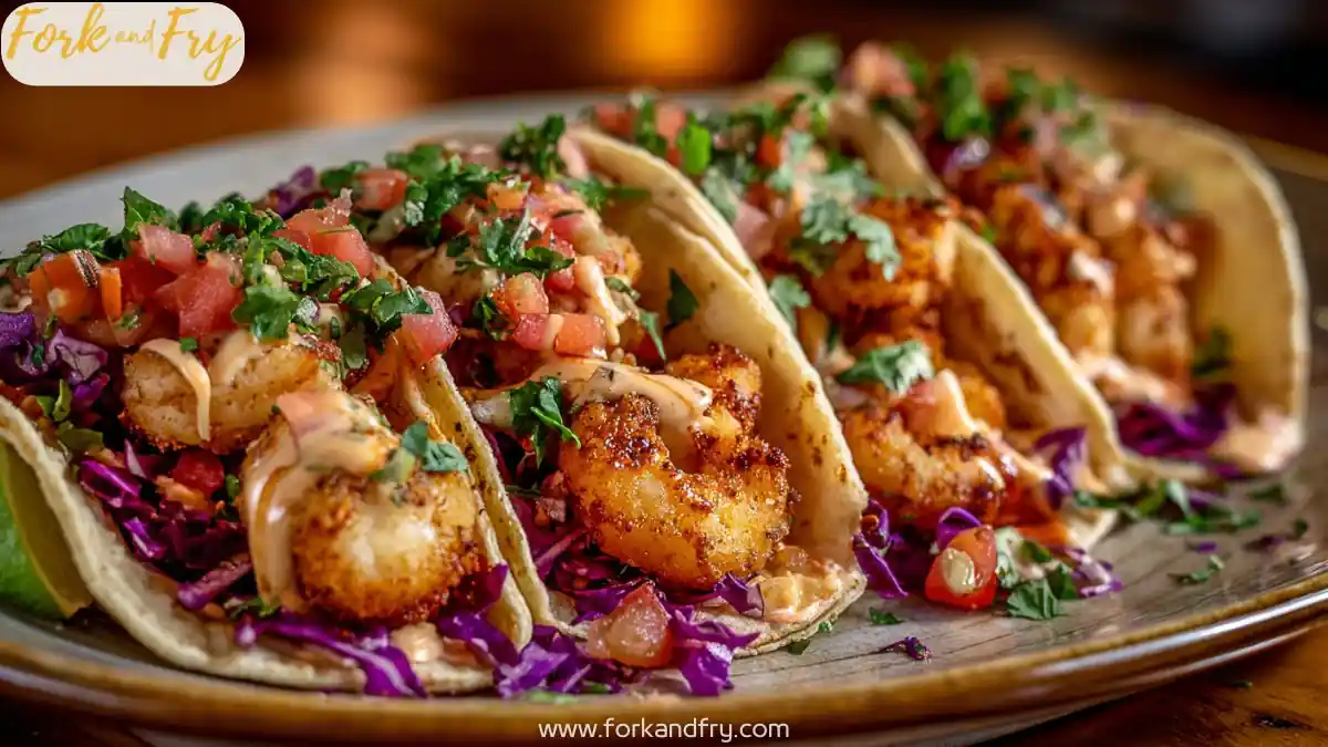 Crispy shrimp with a spicy kick, wrapped in soft tortillas.