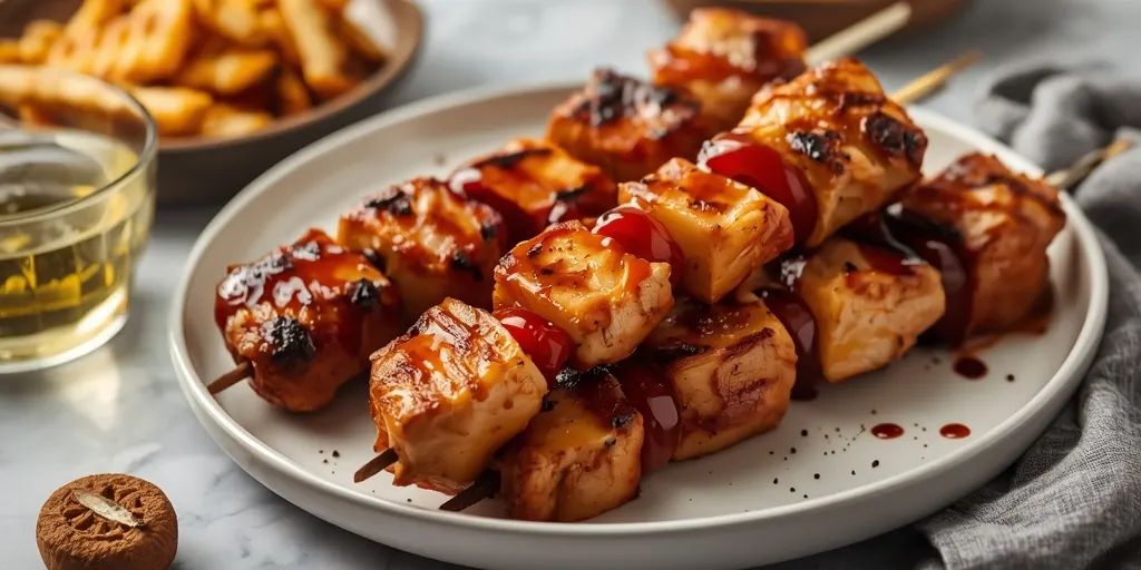 This BBQ chicken skewers platter is perfect for parties and gatherings, offering juicy grilled chicken with a burst of flavor in every bite.