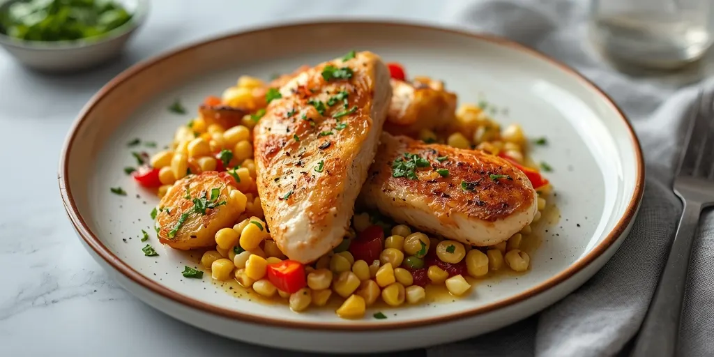 A delightful one-pan meal that combines the richness of chicken with the sweetness of corn, perfect for a springtime dinner.