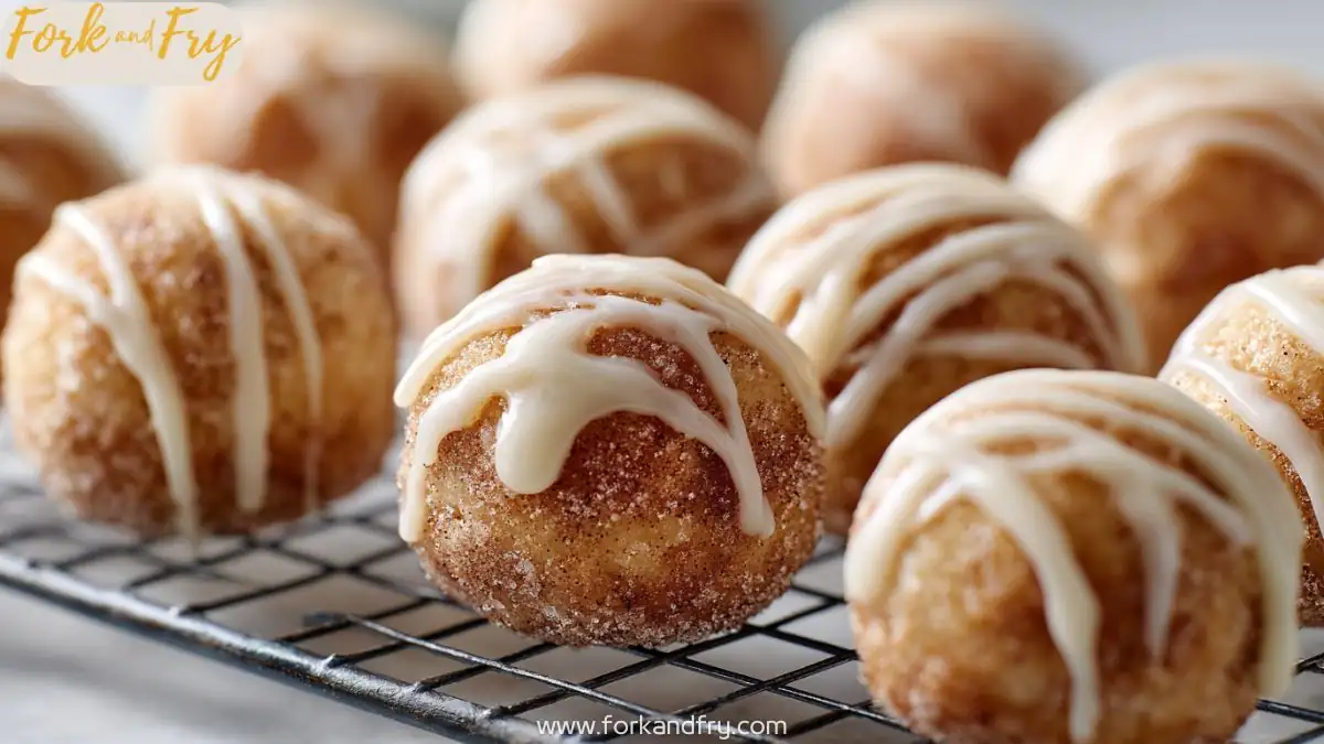 Soft baked donut holes coated in cinnamon sugar and finished with a light vanilla glaze, designed for easy home baking and sharing.