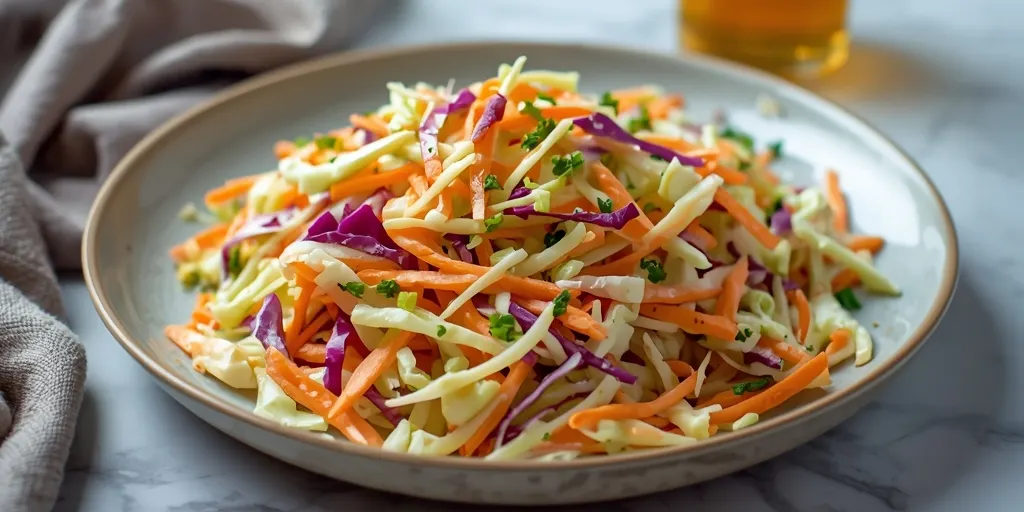 Pro Tips: Use a mix of green and red cabbage for a colorful presentation. Ingredient Substitutions: Replace mayonnaise with Greek yogurt for a lighter version. How to Serve: Ideal for pairing with grilled meats or as a sandwich topping. Storage & Freshness: Keeps well in the fridge for up to 3 days. Make-Ahead Tips: Allow flavors to develop by chilling for at least an hour before serving.