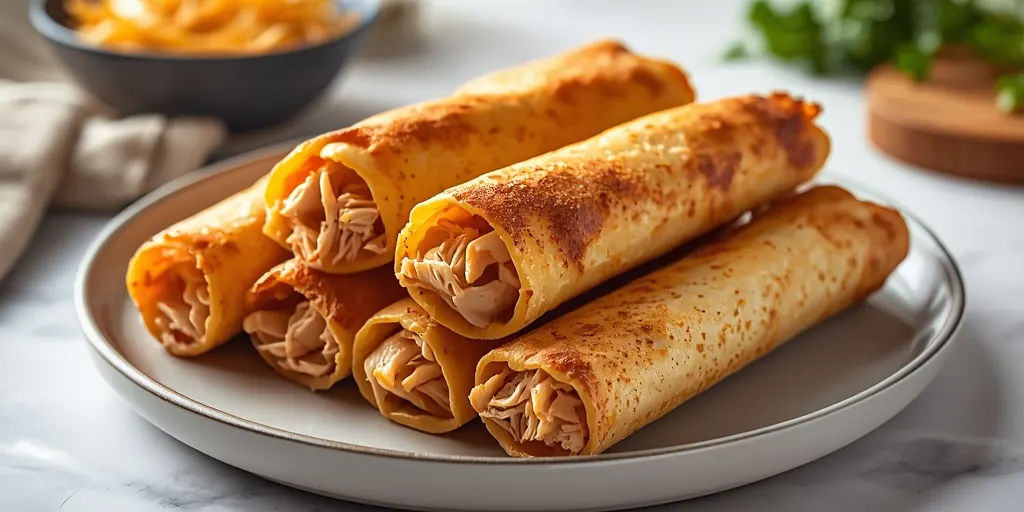 These crispy chicken taquitos are filled with savory shredded chicken and cheese, perfect for a delicious meal or appetizer.