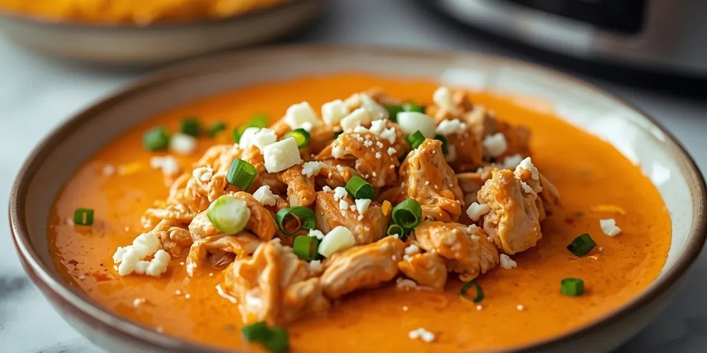 A creamy, spicy buffalo chicken dip made in the crockpot, perfect for game day or any gathering.