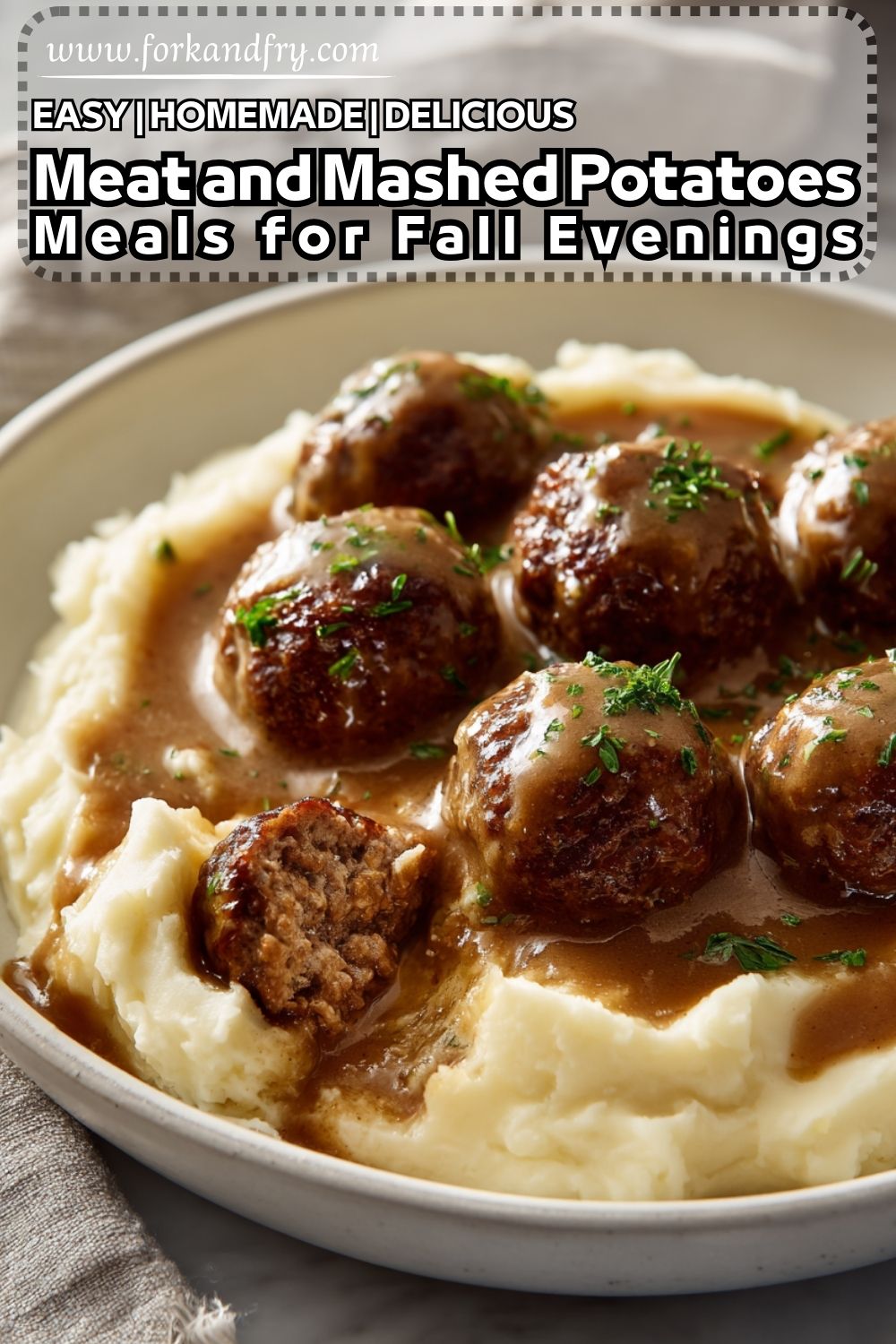 Keyword Comfort Food Dinner, fall recipes, Ground Beef Meatballs, Mashed Potato Meals, Meatballs with Gravy