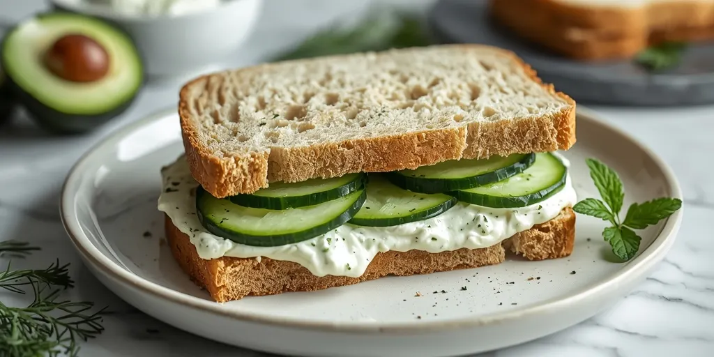 Cool, refreshing cucumber sandwiches paired with a creamy yogurt herb spread, perfect for a light lunch.