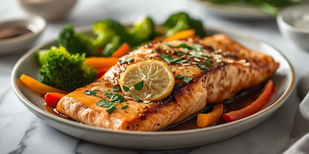A delicious and healthy honey garlic salmon recipe with vegetables, perfect for a nutritious dinner.