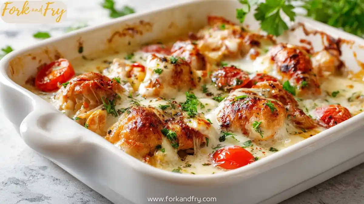 Add the creamy finish: Once rice is tender and chicken is cooked, stir heavy cream into the rice around the chicken (do not aggressively stir the chicken). Sprinkle Parmesan and mozzarella evenly over the top. The cream makes the dish taste richer and more casserole-like without making it heavy.
