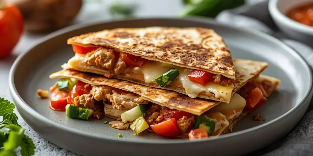 Pro Tips: Ensure your skillet is hot to achieve a crispy tortilla. Ingredient Substitutions: Use Monterey Jack cheese for a milder flavor. How to Serve: Serve with a side of guacamole or salsa. Storage & Freshness: Store in the refrigerator for up to 3 days. Make-Ahead Tips: Prepare the chicken and vegetables a day in advance.