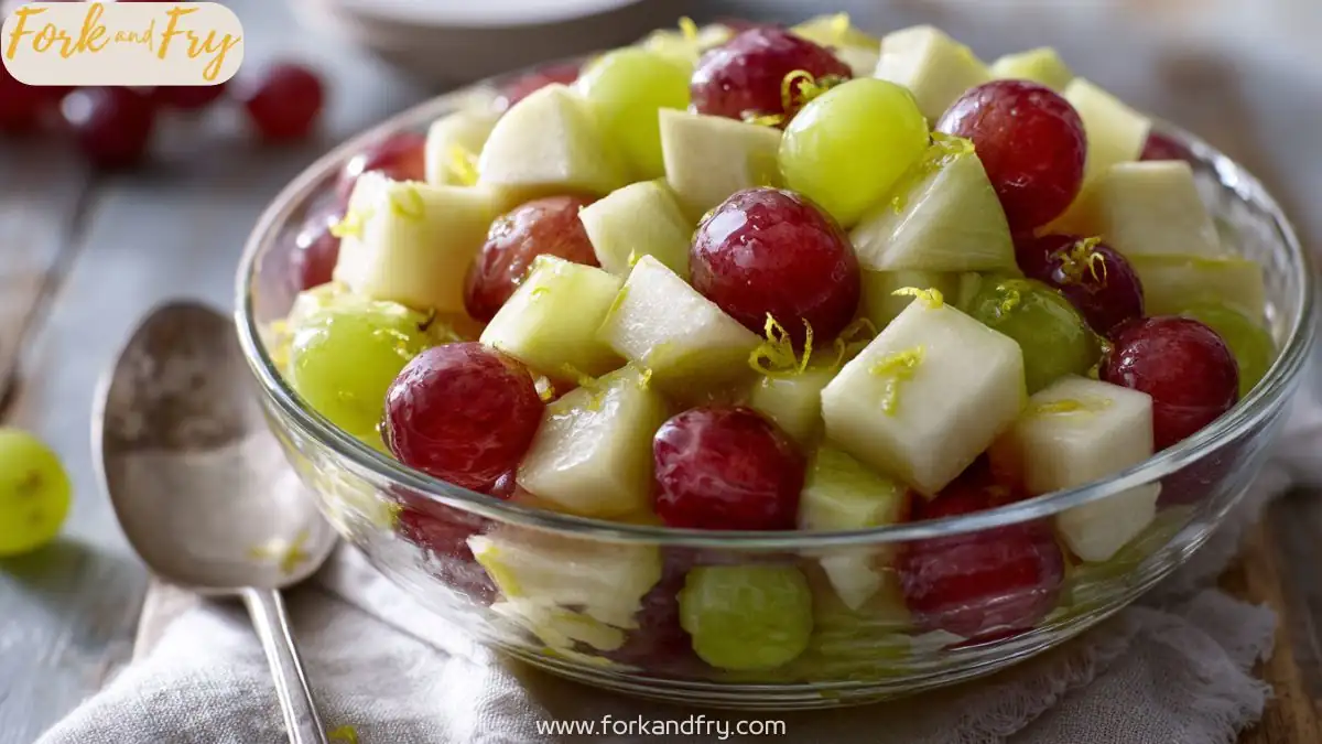 Fresh apples and grapes tossed in a light lemon and honey dressing for a bright, balanced fruit side designed for breakfast plates.