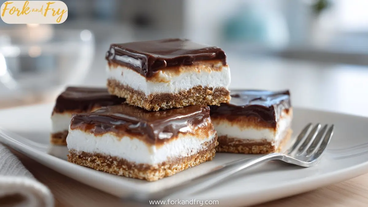 No-bake dessert squares made with a graham cracker crust, smooth marshmallow cream layer, and rich chocolate topping.