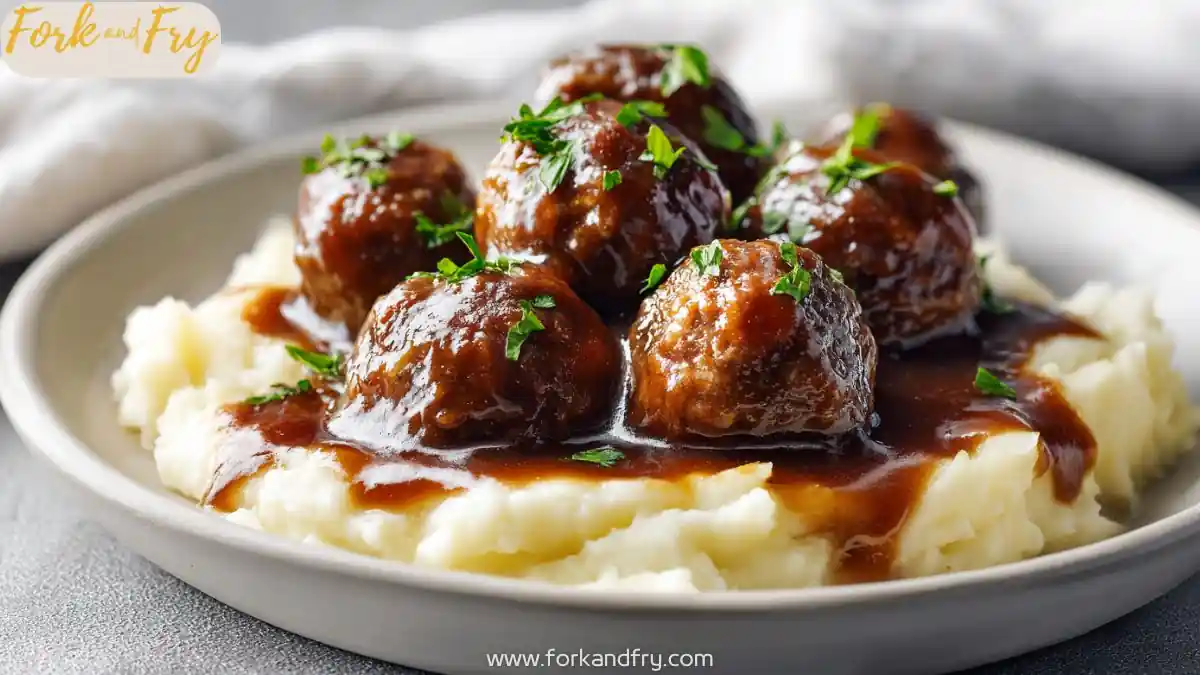 Keyword Ground Beef Recipes, Mashed Potato Meals, Meatballs with Gravy, Salisbury Steak Meatballs