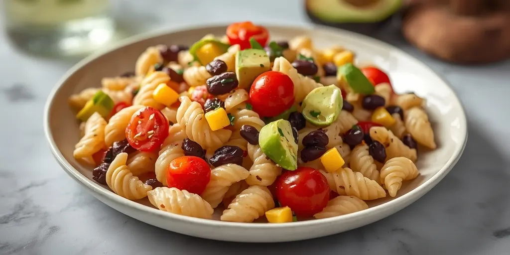This zesty Mexican pasta salad is perfect for summer BBQs, featuring fresh corn, black beans, and a tangy lime dressing.