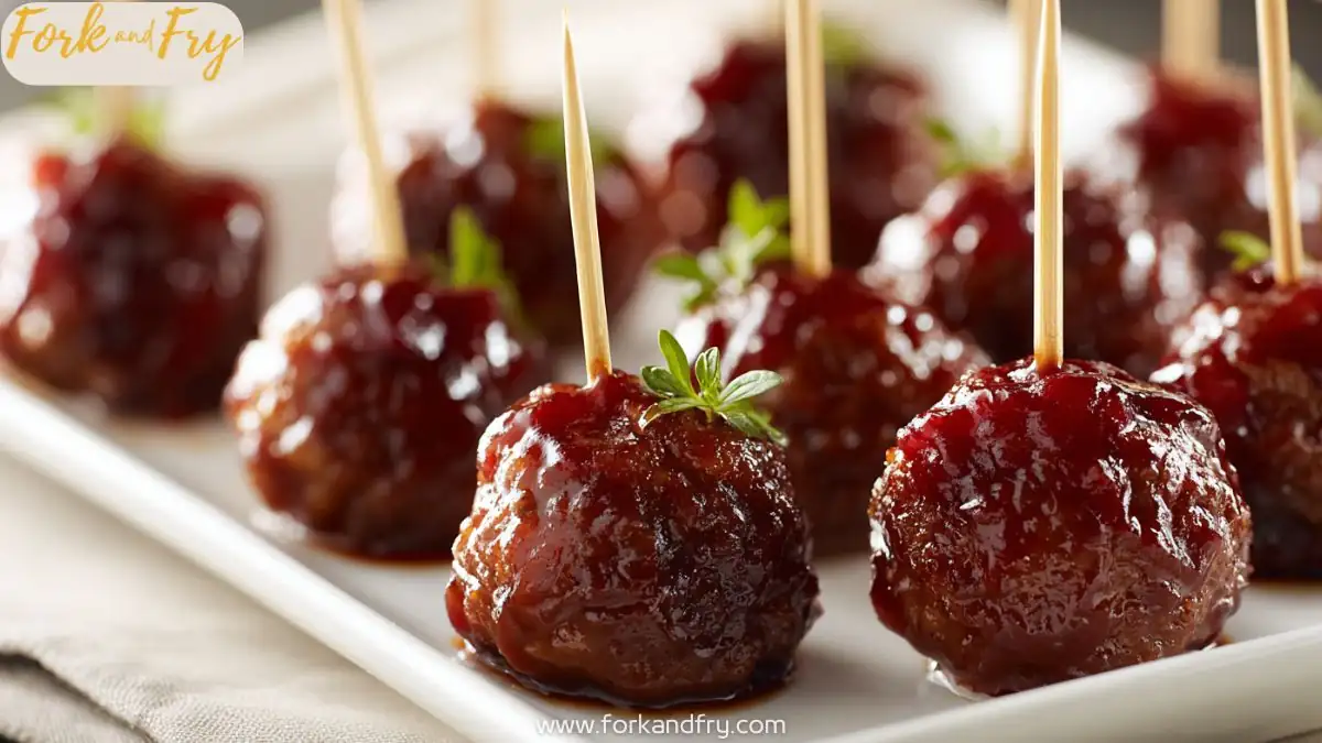 Baked mini meatballs coated in a sweet-savory cranberry barbecue glaze, designed for party appetizers and easy entertaining.