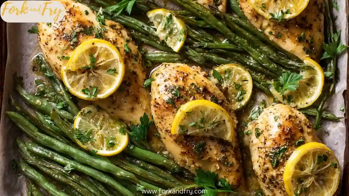 Finish and serve: Slice chicken, sprinkle parsley, and serve with lemon wedges. Optional: toss hot green beans with a small pat of butter for extra gloss and flavor.