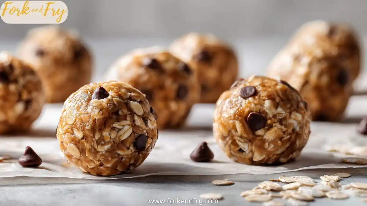No-bake peanut butter oat energy bites with mini chocolate chips, designed for easy healthy snacking and meal prep.