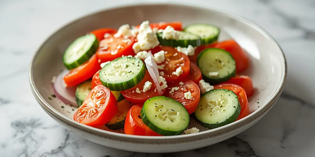 Pro Tips: Choose the freshest cucumbers and tomatoes for the best flavor. Ingredient Substitutions: Use lemon juice instead of vinegar for a different taste. How to Serve: Serve chilled for maximum refreshment. Storage & Freshness: Store in airtight containers to prolong freshness. Make-Ahead Tips: Mix the dressing separately and add just before serving.