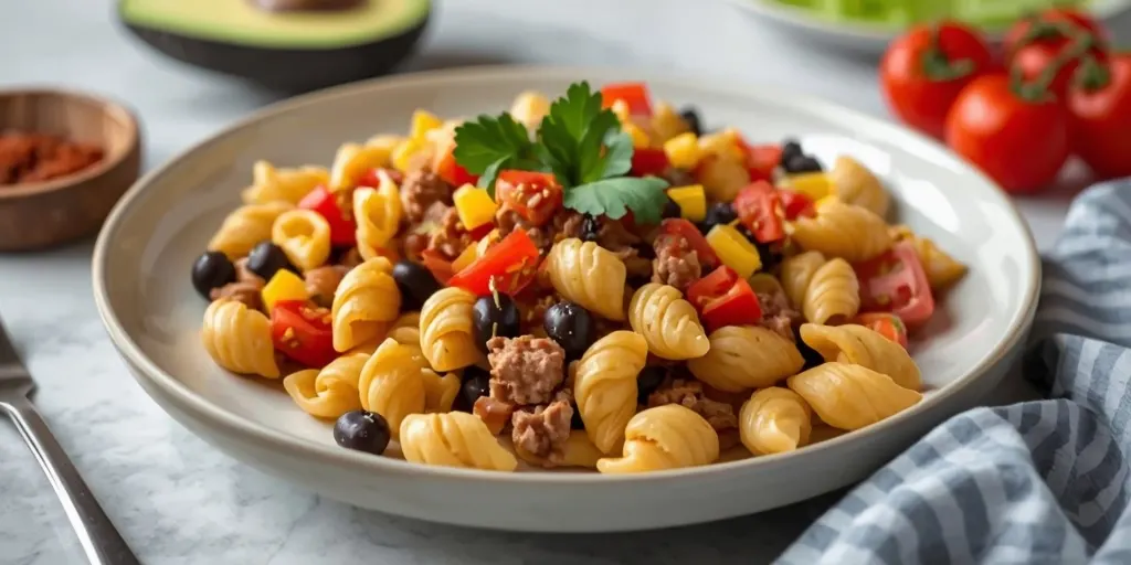 A flavorful taco pasta salad that's easy to prepare and perfect for busy weeknights.