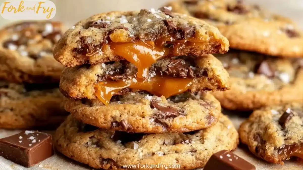 These Salted Caramel Chocolate Chip Cookies combine rich chocolate and smooth caramel in a delightful blend that offers both crispness and chewiness in every bite.