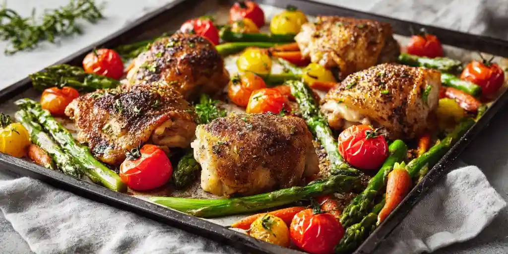 An easy and delicious sheet pan chicken dinner perfect for family meals. Quick, flavorful, and kid-friendly, it's ideal for a springtime feast.
