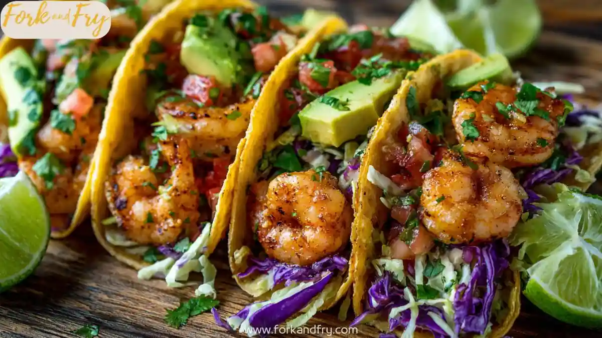 Flavorful tacos that bring a kick to your dinner table with juicy shrimp, zesty spices, and fresh vegetables.