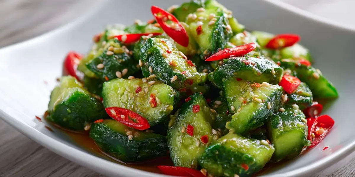 This spicy smashed cucumber salad with sesame and chili oil is a refreshing side dish that combines the coolness of cucumbers with the heat of chili oil and the nutty flavor of sesame seeds.