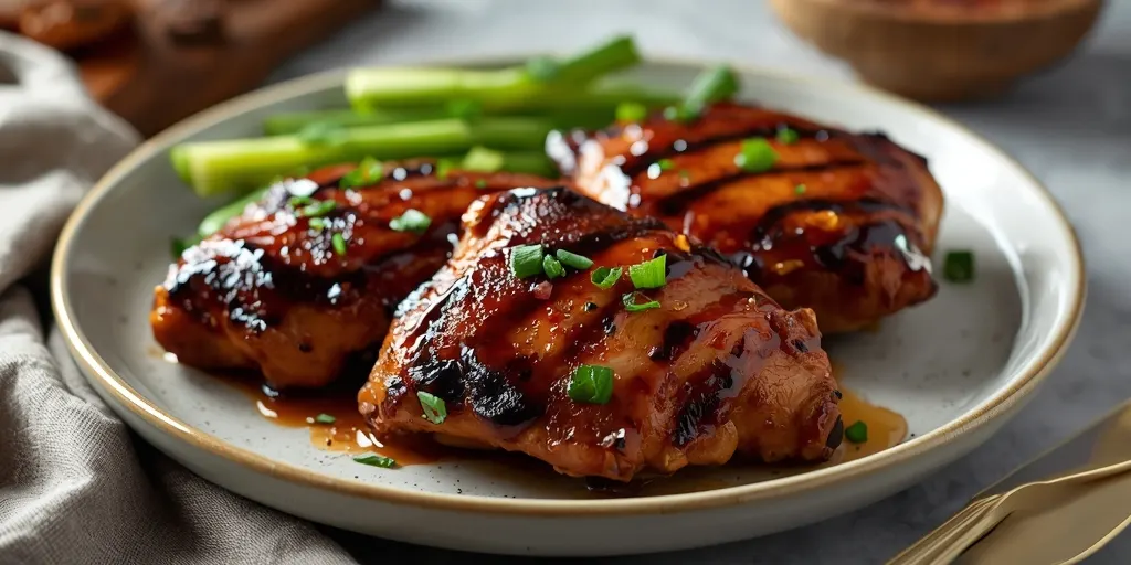 These sticky boneless BBQ chicken thighs are perfect for a quick and delicious dinner, offering a blend of sweet, smoky, and tangy flavors.