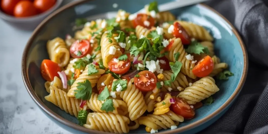A delightful fusion of Mexican street corn and pasta, perfect for healthy meal prep.